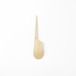 抑揚と言いますか高低差が小さめのペラッとした感じのデザインにしたかったので、8mm厚の薄い板から削り出して作りました。ホワイトアッシュ柾目の比重の高い部位を使うことで軽いけれど程よく重みを感じることができます。仕上に液体ガラス塗装を塗っているのでカトラリーとして安心してお使いいただけます。